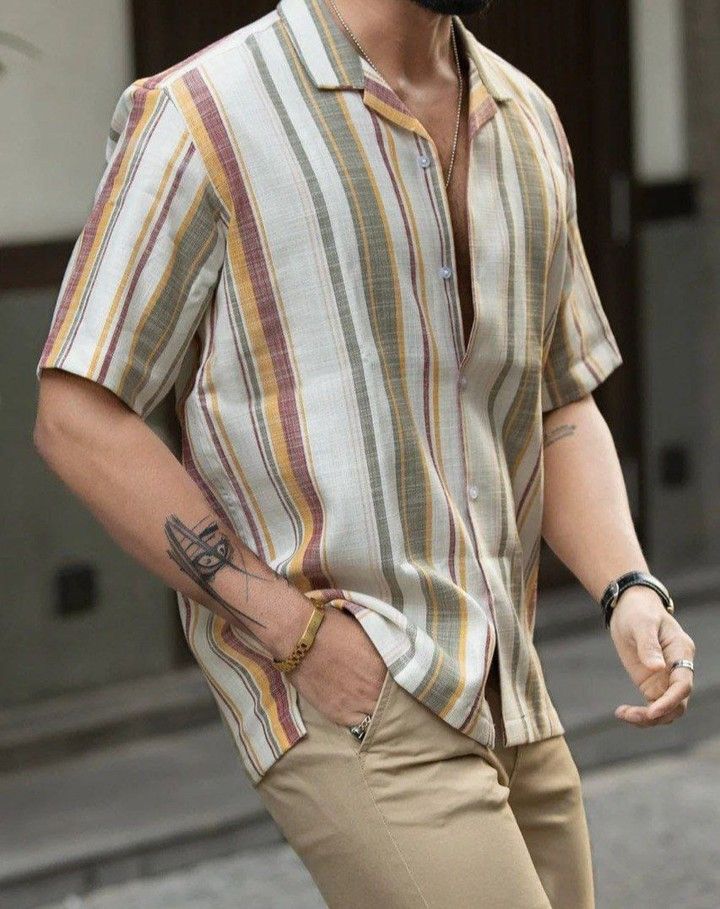 Spring Men's Collar Shirt Jacket Personalized Striped